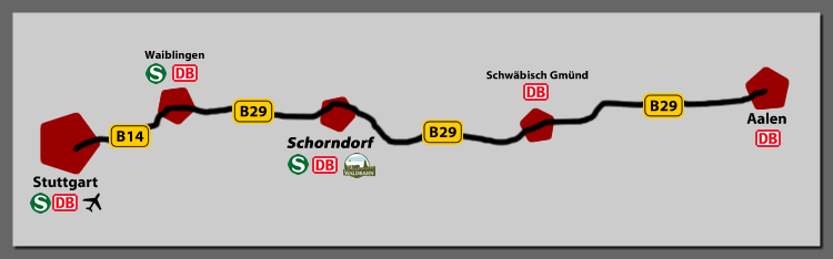 Von Aalen her kommend: B 29 Richtung Schorndorf Ausfahrt: Haubersbronn, Welzheim, Schorndorf